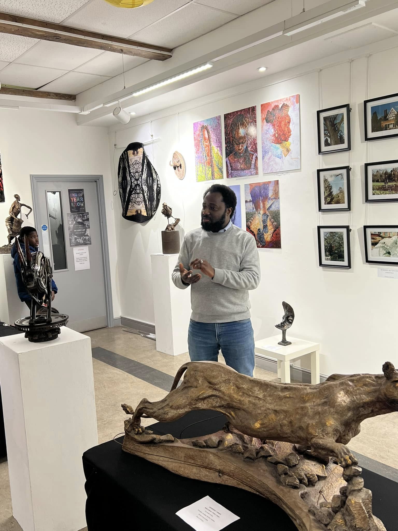 Chike Felix Uzoka is a sculptor and painter with a vast knowledge of various sculpting mediums ranging from clay to sand, wood, stone and metal etc. At the moment, he is focused on environmental sustainability in art by recycling old into papier-mâché pieces in the round figures.