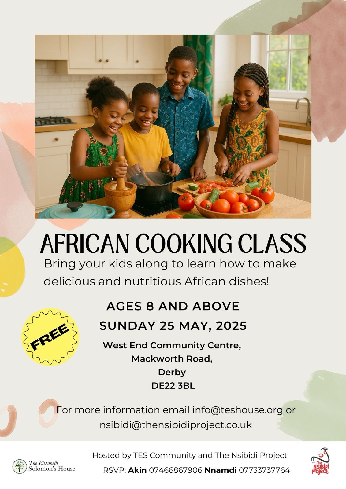On the 25th of May 2025, we partnered with TES HOUSE to host a vibrant African Cooking Class for children at the West End Community Centre in Derby.